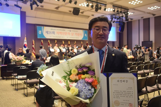 (전북=NSP통신) 김광석 기자 = 전북 완주군의회 유의식 의원이 지난 29일 한국프레스센터 국제회의장에 열린 ‘제20회 지역신문의 날’ 기념식에서 기초의원 부분 의정대상을 수상하는 영예를 안았다.