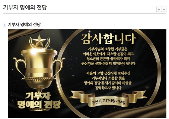 또한 시는 감사의 마음을 담아 군산 고향사랑기부제 기부자 전원의 이름도 올릴 계획이다.