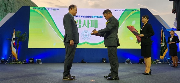 (전북=NSP통신) 김광석 기자 = 전북 군산시의회 김영일 의장이 지난 27일 군산근대역사박물관 일원에서 열린 ‘한국후계농업경영인 전라북도 대회’에서 감사패를 수상했다.
