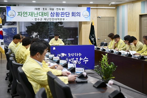 장수군은 이번 태풍에 대비해 지난 8일부터 송주섭 부군수를 주재로 한 재난안전대책본부 가동, 비상근무 근무자를 지정·운영하고 있으며, 산사태 예측 발령 시 행동 메뉴얼에 따른 대응 체계를 즉각 가동할 계획이다.