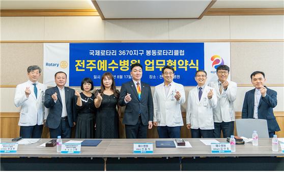 (전북=NSP통신) 김광석 기자 = 전주예수병원(병원장 신충식)은 국제로타리3670지구 봉동로타리클럽(회장 한진희)과 지역사회 봉사를 위한 업무협약을 체결했다고 17일 밝혔다.