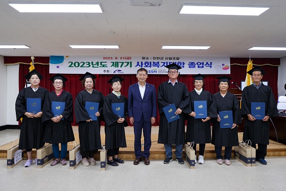 전춘성 진안군수는 이날 축사를 통해 “5개월 동안의 공부를 통해 사회복지에 대한 마음가짐이 달라졌을 것”이라며 “사회복지를 실천하는 최고의 동네 복지사로서 앞으로 복지사각 발굴과 이웃 돌봄에 앞장서기를 당부드리며, 졸업을 진심으로 축하한다”고 말했다.