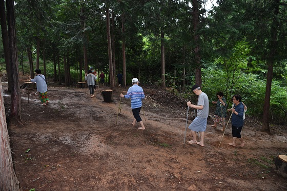 정모씨 부부는 “산책로의 흙이 황토처럼 너무 좋아 맨발로 걸으면 참 좋겠다는 생각을 했다”며 “조금씩 길을 다졌더니 맨발로 걷는 주민들이 조금씩 늘어났다”고 설명했다.