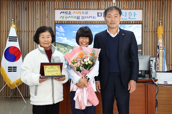 (전북=NSP통신) 김광석 기자 = 전북 진안군은 14일 군수실에서 '2022 항저우 장애인아시안게임'과 '장애인전국체육대회'에서 메달을 획득한 미소천사 전민재 선수를 축하하는 자리를 가졌다.