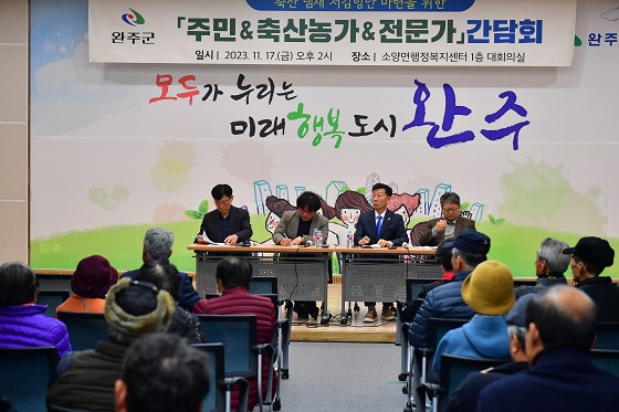 (전북=NSP통신) 김광석 기자 = 전북 완주군의회 유이수 산업건설위원장이 17일 소양면행정복지센터 1층 대회실에서 ‘축산냄새 저감 방안 마련’이라는 주제로 간담회를 개최했다.
