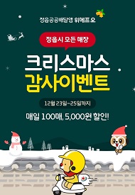 (전북=NSP통신) 김광석 기자 = 전북 정읍시가 민선 8기 핵심 공약인 정읍형 공공배달앱 ‘위메프 오’의 성공적 안착을 기념해 위메프오 가입자를 대상으로 크리스마스 감사 이벤트를 진행한다.