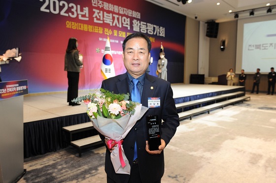 (전북=NSP통신) 김광석 기자 = 전북 완주군의회 서남용 의장이 지난 20일 전주라한호텔에서 개최된 ‘2023년 전북지역 활동평가회’에서 민주평화통일자문회의 전라북도지사 표창을 수상했다.