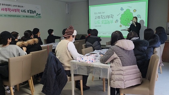 로컬푸드 직매장과 공공급식지원센터 소비자를 대상으로 전북삼락로컬마켓의 공유주방에서 진행된 이번 교육은 ‘기후위기와 탄소중립 시대의 먹거리안보와 로컬푸드’, ‘탄소 저리 가! 사부작사부작 나도 로컬농부’를 부제로 진행됐다.