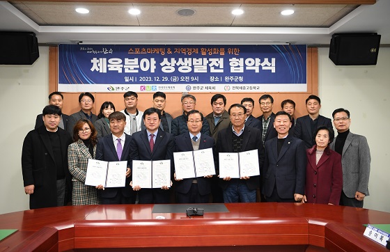 완주군은 29일 전라북도체육회, 완주군체육회, 전북체육고등학교와 스포츠마케팅을 통한 지역경제 활성화를 위한 상생발전 업무협약을 체결했다고 밝혔다.