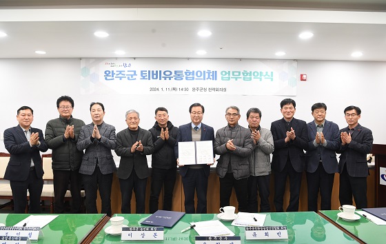 완주군은 11일 퇴비유통협의체 운영협약을 맺고, 완주군 관내 한우농가의 가축분뇨를 다시 농업에서 활용하는 경축순환농업 활성화를 다짐했다.