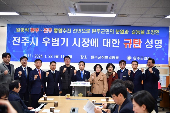 서남용 의장은 “지난 2022년 11월 완주군과 전주시는 통합을 배제한다는 전제 하에 완주·전주 상생협력사업 협약을 체결했다”며 “이 협약은 완주군민과 전주시민의 복지향상과 지역 동반발전을 위해 체결됐으며 무엇보다 두 지자체가 상호 존중과 신뢰하에 협력사업을 진행한다는 것이 상생협력의 본질이었다”라고 꼬집었다.