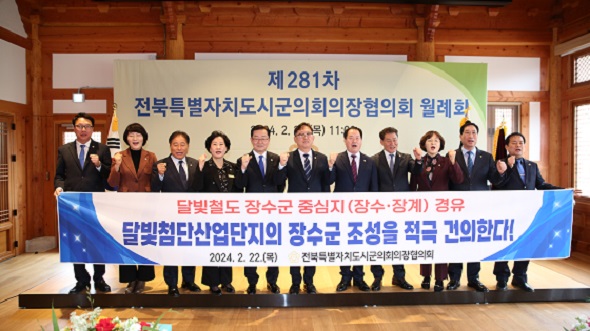 장정복 장수군의회 의장은 이날 전북시군의회의장협의회에 ‘달빛첨단산업단지 장수군 조성 건의안’을 제출하고 “달빛첨단산업단지 조성은 장수군뿐만 아니라 전북특별자치도 동부권 경제에 활력을 불어넣을 중요한 기회가 될 것”이라고 밝혔다.
