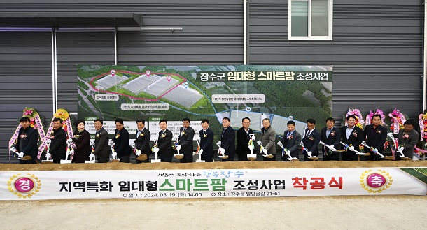 이날 착공식에는 최훈식 장수군수, 김종훈 전북특별자치도 경제부지사, 이종섭 장수군의회 부의장, 농업인 단체 등 주요 내빈과 관내 주민 200여 명이 참석한 가운데 지역특화 임대형 스마트팜 사업의 첫 시작을 성공적으로 알렸다.