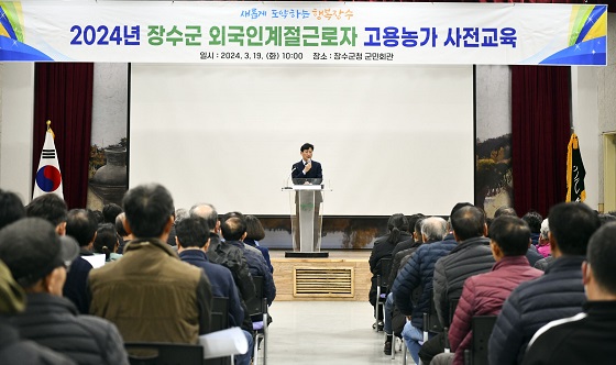 (전북=NSP통신) 김광석 기자 = 전북 장수군이 지난 19일 군민회관에서 2024년도 외국인 계절근로자 고용농가 106명을 대상으로 사전 교육을 실시했다.