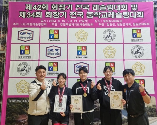 25일 완주군에 따르면 최근 강원특별자치도 철원에서 열린 제42회 회장기 전국레슬링대회에서 이지선 선수(FW72kg)가 금메달을 오정빈 선수(FW53kg)가 은메달, 한예슬 선수(FW76kg)가 동메달을 각각 따냈다.