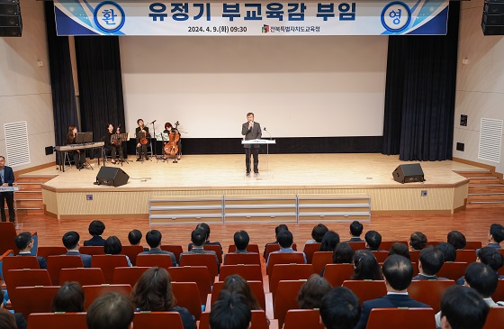 유정기 부교육감은 이날 창조나래 시청각실에서 열린 부임식에서 “항상 학생들을 중심에 두고 더 특별한 교육으로 전북교육의 대전환을 위해 불철주야 노력하시는 전북 교육가족 여러분과 함께 근무하게 된 것을 영광스럽게 생각한다”면서 이같이 밝혔다.