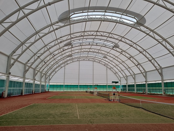 총 40여억 원의 사업비가 투입된 실내 테니스장은 두산리 일원 3만1876㎡ 규모 부지에 테니스 코트 4면과 관리사 1동 등 4098㎡의 시설을 포함한 막구조로 조성됐다.