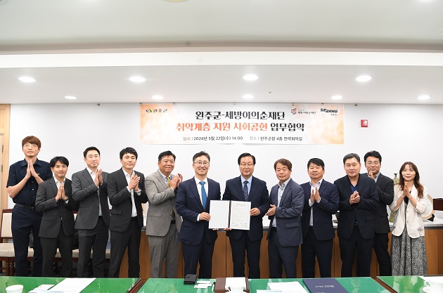 완주군과 세방이의순재단은 이번 협약을 통해 완주군 취약계층 지원을 위한 사회공헌활동에 뜻을 모으고, 완주군 사회공헌 지원사업에 지속적으로 협력해 나가기로 했다.