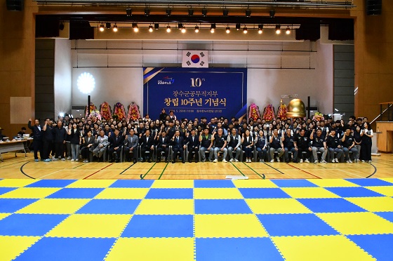 1부 창립 기념식은 노조 10년을 되돌아보는 동영상 상영으로 시작돼 개회선언, 우수공무직 시상, 고향사랑기부제 기탁식, 대회사 등의 순으로 진행됐다.