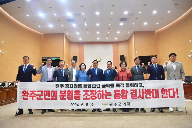 (전북=NSP통신) 김광석 기자 = 전북 완주군의회(의장 서남용)가 완주·전주 행정구역 통합을 반대한다는 결의문을 채택했다.