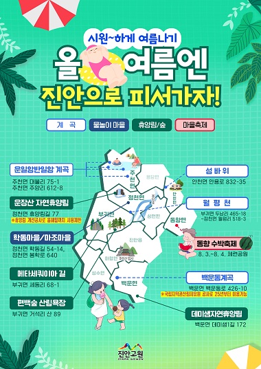 (전북=NSP통신) 김광석 기자 = 전북 진안군이 올여름을 시원하게 보낼 수 있는 명소들을 소개한 ‘진안군 여름 피서지도’를 공개했다.