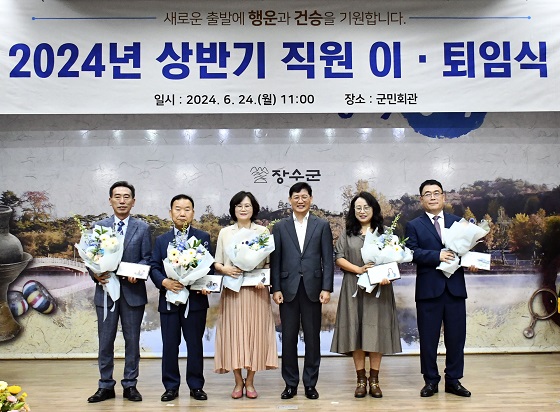 (전북=NSP통신) 김광석 기자 = 전북 장수군이 24일 군민회관에서 2024년 상반기 직원 이·퇴임식을 실시했다.
