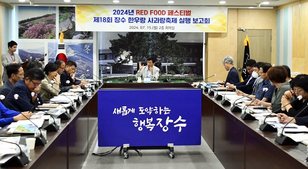 (전북=NSP통신) 김광석 기자 = 전북 장수군이 15일 군청 회의실에서 오는 9월 5~8일까지 4일간 개최되는 장수군 대표축제 ‘장수 한우랑 사과랑 축제’의 성공적인 개최를 위한 축제 실행계획 보고회를 개최했다.