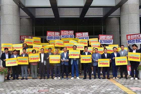 이번 집회에는 유의식 의장을 비롯한 군의원과 도의원, 완주·전주통합반대대책위원회 회원 등 50여 명이 참석했다.
