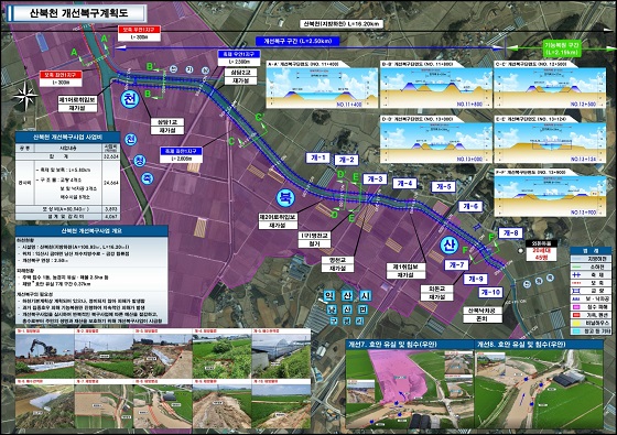 산북천이 ‘개선복구 사업’에 반영됨에 따라 2026년까지 2.5km 하천을 보축 및 축제로 정비하며 교량 4개소도 재가설 할 예정이다. 신속한 사업 추진을 위해 하천 수해복구 전담대응팀(TF)을 구성해 사업기간 내에 완료한다는 계획이다.