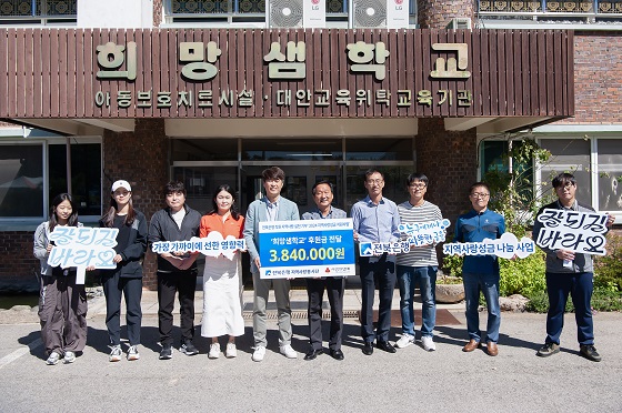 (전북=NSP통신) 김광석 기자 = JB금융그룹 전북은행지역사랑봉사단(공동단장 백종일 은행장, 정원호 노조위원장)은 고창 희망샘학교에 지역사랑성금 400여만원을 전달했다고 7일 밝혔다.