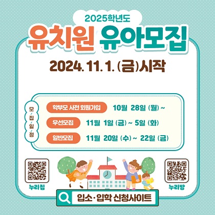 2025학년도 유아모집부터는 유치원과 어린이집 입소·입학 신청이 일원화된다.