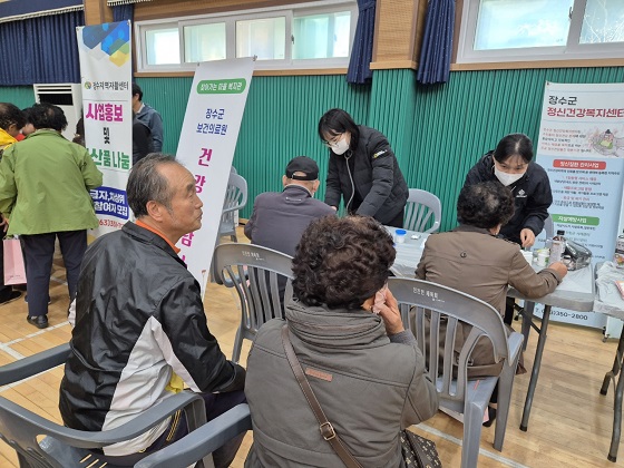 NSP통신-장수군보건의료원이 23일 천천면 하늘내체육관에서 지역주민을 대상으로 지역사회 통합건강증진사업을 알리는 홍보부스를 운영했다. (사진 = 장수군)