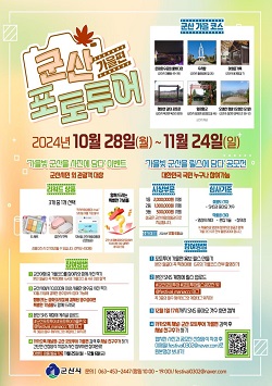 (전북=NSP통신) 김광석 기자 = 전북 군산시는 다음 달 24일까지 가을 행락객들을 유치하기 위해 군산 내 가을 명소들을 소개하고 특별한 추억을 남길 수 있는 '군산 포토투어 가을편과 릴스 공모전'을 개최한다.