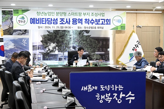 (전북=NSP통신) 김광석 기자 = 전북 장수군은 25일 군청 회의실에서 ‘청년농업인 분양형 스마트팜 부지 조성사업’ 예비타당성 조사 용역 착수보고회를 개최했다.