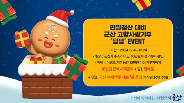 (전북=NSP통신) 김광석 기자 = 전북 군산시가 연말정산 시기를 앞두고 4일부터 24일까지 ‘군산에 기부하고 수제맥주 받는 덤덤!’ 이벤트를 진행한다.