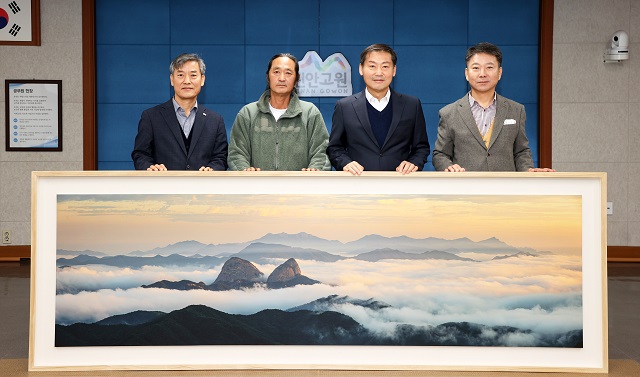 5일 군수실에서는 정 작가가 덕태산에서 바라본 마이산의 운해를 담은 파노라마 사진 등 총 2점을 전달하는 기탁식이 열렸다.