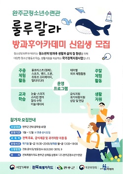 (전북=NSP통신) 김광석 기자 = 전북 완주군청소년수련관이 관내 중학교 1~3학년을 대상으로 ‘2025년 청소년방과후아카데미’ 신입생을 연중 모집하고 있다.