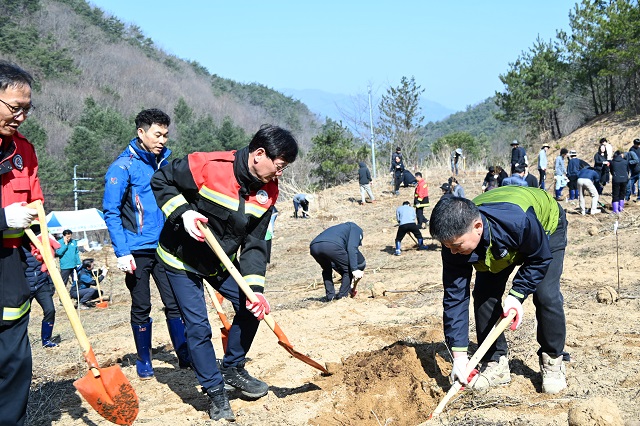 최훈식 군수를 비롯한 공무원 등 250여 명이 참여한 가운데 진행된 이날 행사는 지구온난화로 인한 기온상승으로 식목일보다 앞당겨 시행됐다.