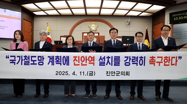 한편 진안군의회는 ▲국가철도망 계획에 진안역 설치를 반드시 반영할 것 ▲군민의 오랜 염원이 실현될 수 있도록 진안역 설치에 대한 정부의 적극적인 이행을 강력히 촉구했다.