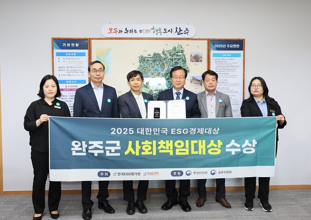 (전북=NSP통신) 김광석 기자 = 전북 완주군이 ‘2025 대한민국 ESG 경제대상’에서 사회적책임 분야 전국 1위를 차지했다고 21일 밝혔다.