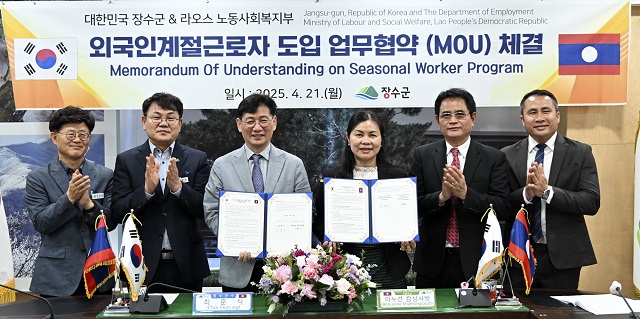 협약 체결로 장수군 농가들은 필요한 시기에 외국인 인력을 안정적으로 확보하고 라오스 근로자들도 합법적인 취업 기회를 얻을 수 있게 됐다.