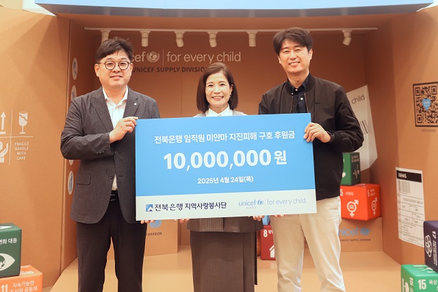 조미진 유니세프 한국위원회 사무총장은 “수년간의 내전에 더해 지진의 피해까지 이중, 삼중의 고통 속에 놓인 미얀마를 위한 전북은행 직원들의 따뜻한 관심과 나눔 참여에 감사하다”고 전했다.