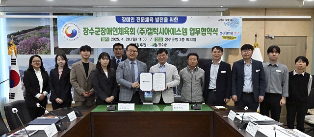 (전북=NSP통신) 김광석 기자 = 전북 장수군장애인체육회(회장 최훈식)는 28일 장수군청 2층 회의실에서 (주)갤럭시아SM과 장애인 전문체육 발전을 위한 업무협약을 체결했다.