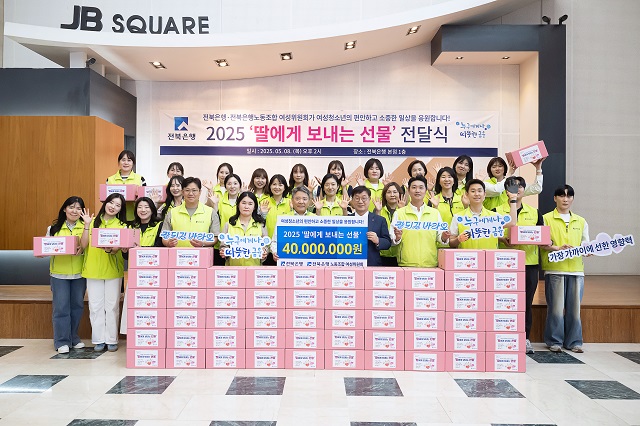 (전북=NSP통신) 김광석 기자 = JB금융그룹 전북은행지역사랑봉사단(공동단장 백종일 은행장, 정원호 노조위원장)은 8일 전북은행 본점 1층 로비에서 여성청소년을 위한 2025 ‘딸에게 보내는 선물’ 전달식을 실시했다고 밝혔다.