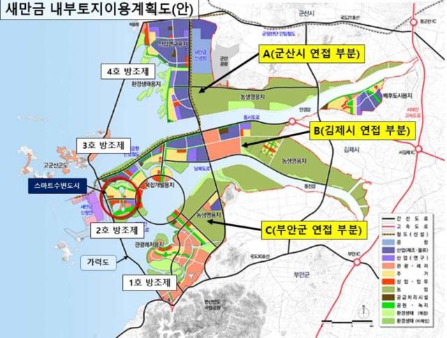 시는 또 수변도시가 현재 김제 내륙과는 직접 연결되지 않은 반면, 생활 기반은 이미 군산시와 밀접하게 연계돼 있다고 강조했다.