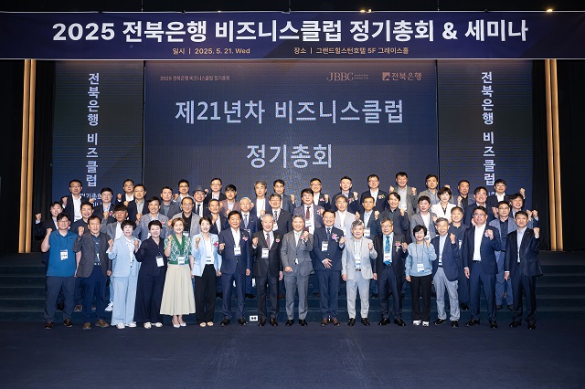 (전북=NSP통신) 김광석 기자 = JB금융그룹 전북은행(은행장 백종일)은 21일 전주 그랜드힐스턴 호텔에서 도내지역 중소기업CEO 등 약 100여명이 참석한 가운데 전북은행 비즈니스클럽 ‘2025년도 정기총회 및 세미나’를 개최했다고 밝혔다.