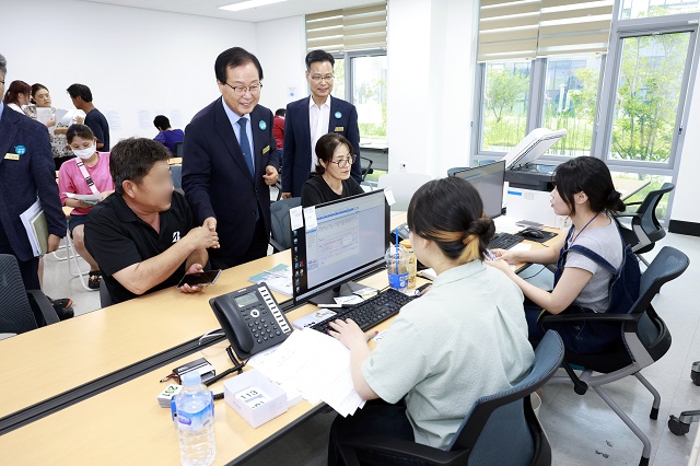 이에 유희태 군수가 소비쿠폰 지급 첫날인 21일 관내 주요 읍면을 방문해 소비쿠폰 홍보와 주민 불편사항 등을 점검하고 실무자들을 격려했다.