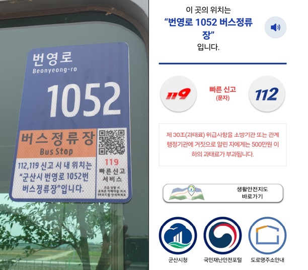 (전북=NSP통신) 김광석 기자 = 전북 군산시가 위급 상황 시 신속한 대처가 가능하도록 긴급구조 신고(112,119) QR 부호(코드)가 포함된 사물주소판 198개를 설치했다.