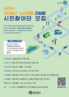 (전북=NSP통신) 김광석 기자 = 전북 군산시가 시내버스 노선체계 개편을 앞두고 시민이 직접 참여해 문제를 진단하고 개선방안을 도출하는 ‘시내버스 노선개편 리빙랩 시민참여단’을 모집한다.