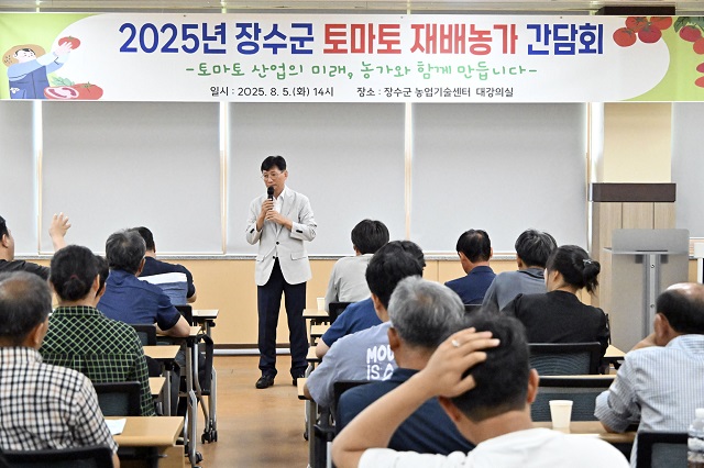 (전북=NSP통신) 김광석 기자 = 전북 장수군은 농업기술센터 대강의실에서 지역 내 토마토 재배 농가들과 간담회를 개최했다고 7일 밝혔다.
